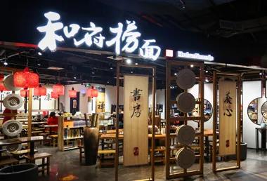 和府撈面成立于2012年,是一家中式面食直營連鎖餐飲品牌,和府撈面堅持打造"養身·養心"的中式文化慢餐飲理念,采用中國傳統文化的代表性裝飾元素,展現古典用餐空間,將書籍設計布滿整個店面,開創了"書房里撈面"的創新模式。