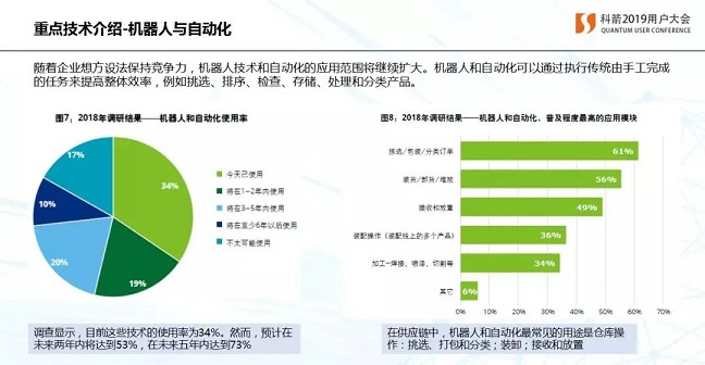 德勤通過客戶調研,統計出下一代供應鏈技術愿景。排名第一的是機器人自動化,第二預測分析大數據,第三是物聯網。